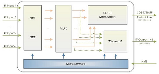 | Input up to 192 channels SPTS/MPTS and output 6*TS over IP or RF | ||