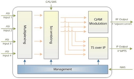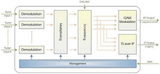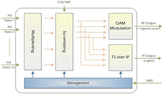 | Input interface | 16*ASI (item RTS4516); 4*ASI (item RTS4504); 8*Tuner(DVB-S2) (item RTS4508) |