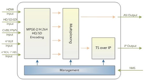 | Audio Compression | MPEG-1 Layer II, MPEG-2/4 LC-AAC, HE-AAC, AC3(2.0, 5.1 available); AC3 passthrough (for SDI input) |