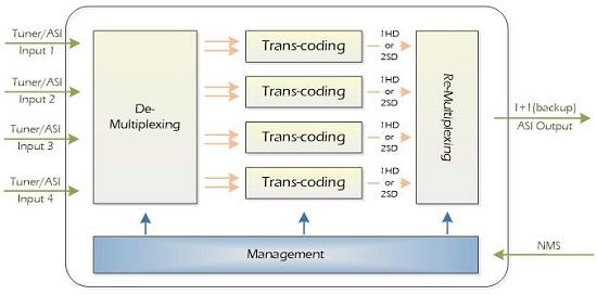 | HD to SD | 4*MPEG-2 HD to 4*H.264/4*MPEG-2 SD; 4*H.264 HD to 4*MPEG-2/4*H.264 SD |