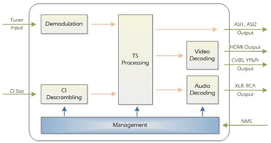 | Video Decoding | MPEG-2(MP@ ML for SD, MP@HL for HD); MPEG 4 AVC/H.264 (MP@L3 for SD, HP@L4.1 for HD) |